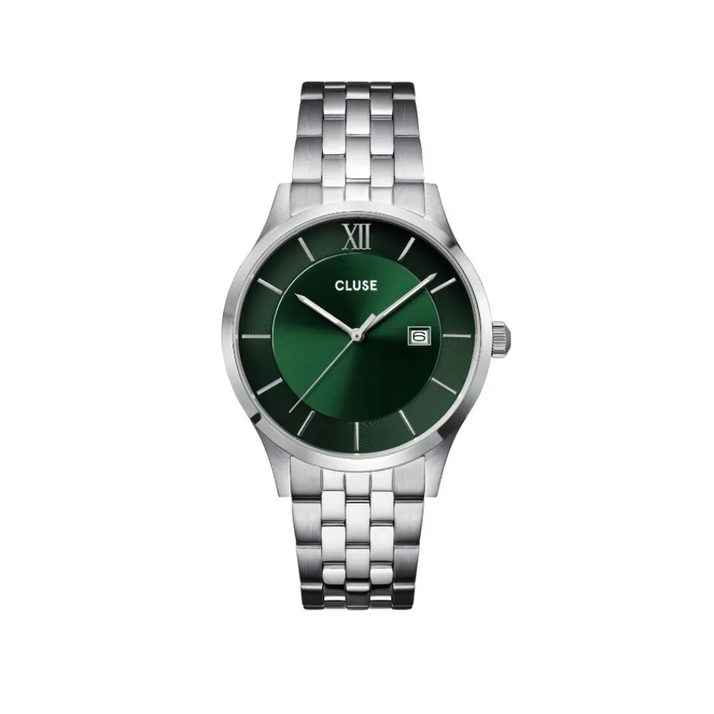 Montre Cluse Aravis Acier Argente Ronde Quartz 40mm Fond Vert Bracelet Acier Argente Cw22702