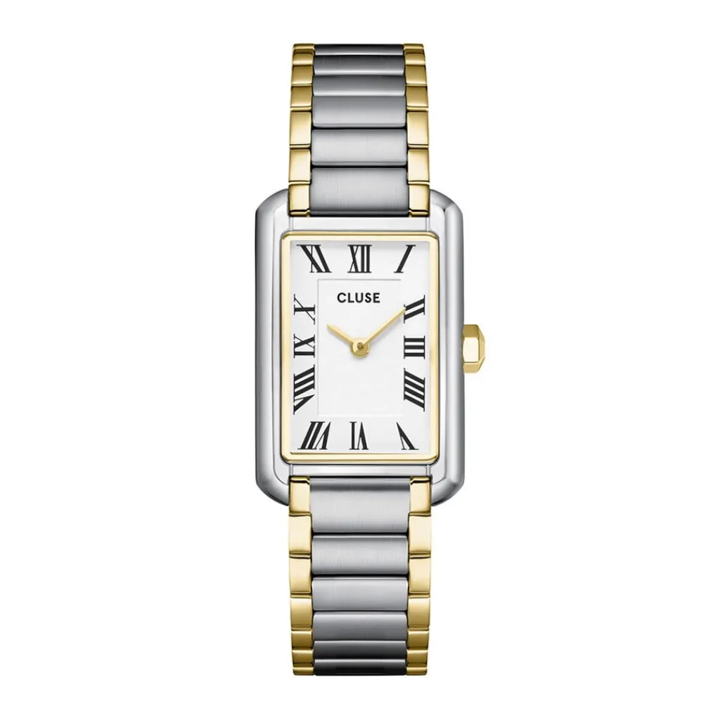 Montre Cluse Belissena Acier Bicolore Rectangulaire Quartz 32x21mm Fond Blanc Bracelet Acier Inoxydable Doré Blanc Cw15003