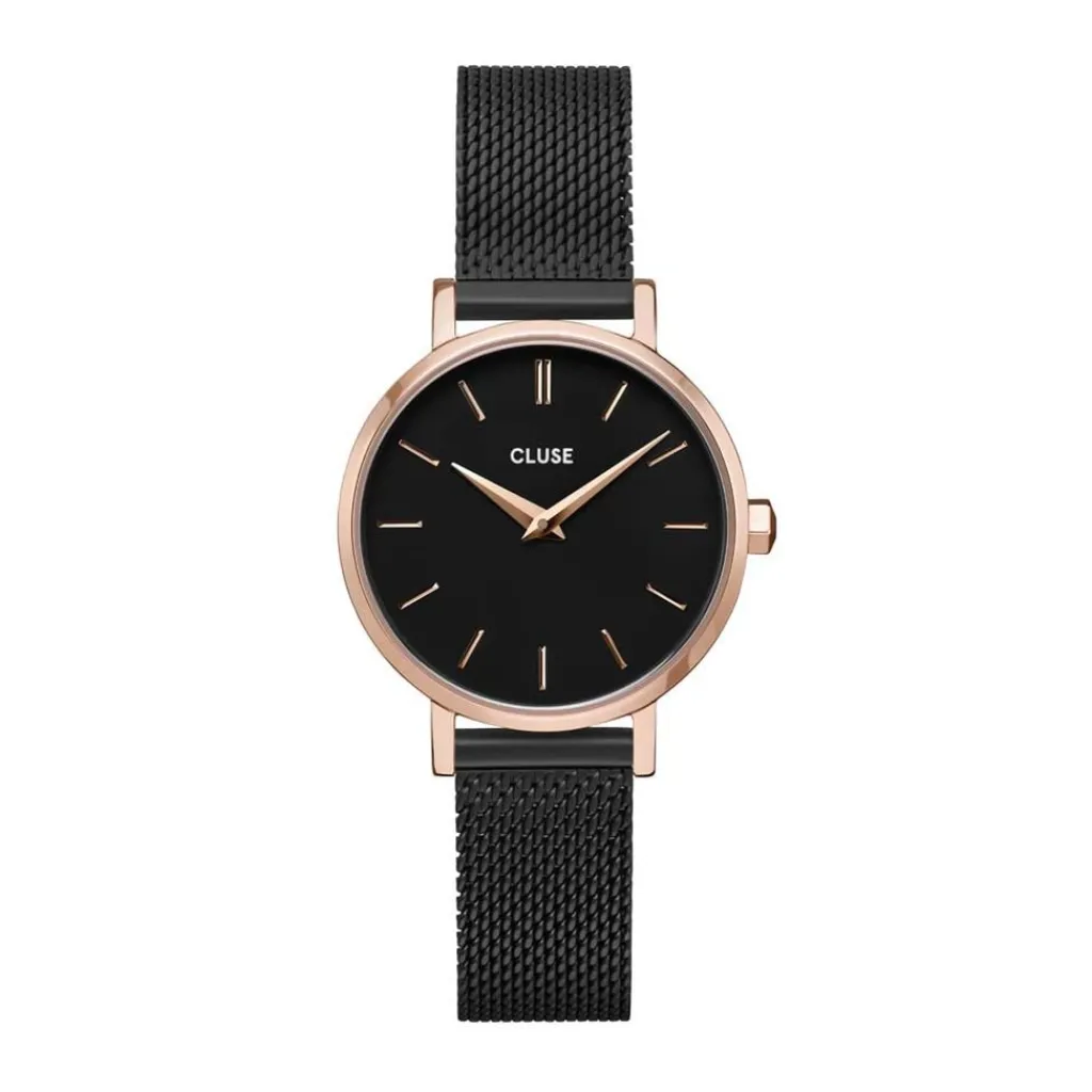 Montre Cluse Boho Chic Petite Acier Dore Ronde Quartz 28mm Fond Noir Bracelet Acier Noir Cw0101211004