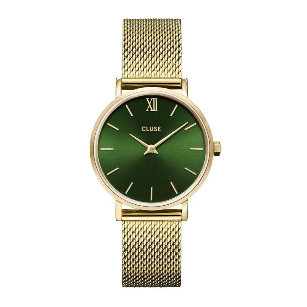 Montre Cluse Minuit Acier Doré Ronde Quartz 33mm Fond Vert Bracelet Acier Doré Maille Milanaise Cw10206