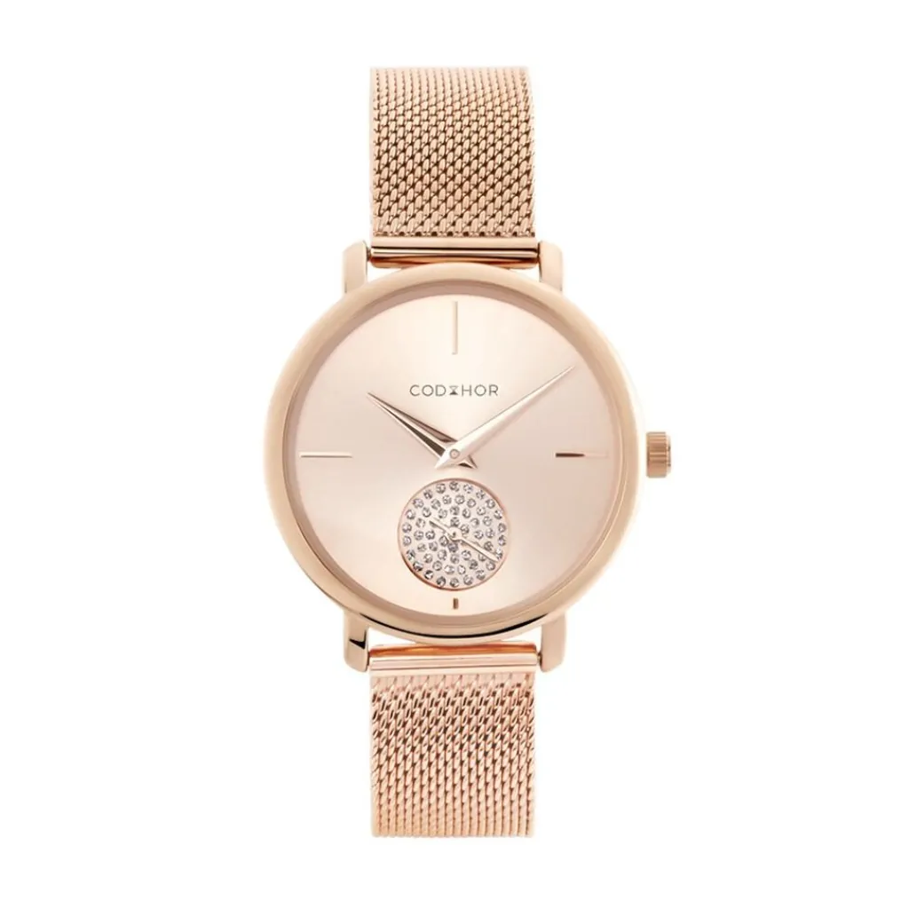 Montre Codhor Amele Alliage Doré Rose Ronde Quartz 36mm Fond Doré Rose Bracelet Milanais Acier Doré Rose P100964-c