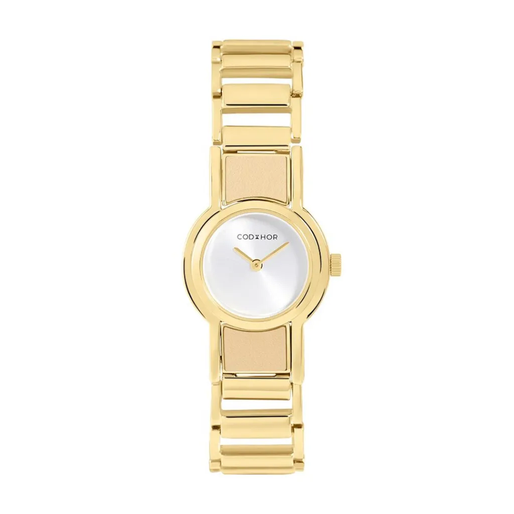Montre Codhor Andree Alliage Doré Ronde Quartz 26mm Fond Argenté Bracelet Alliage Doré Et Cuir Vache Marron Ch.8053sa/02m