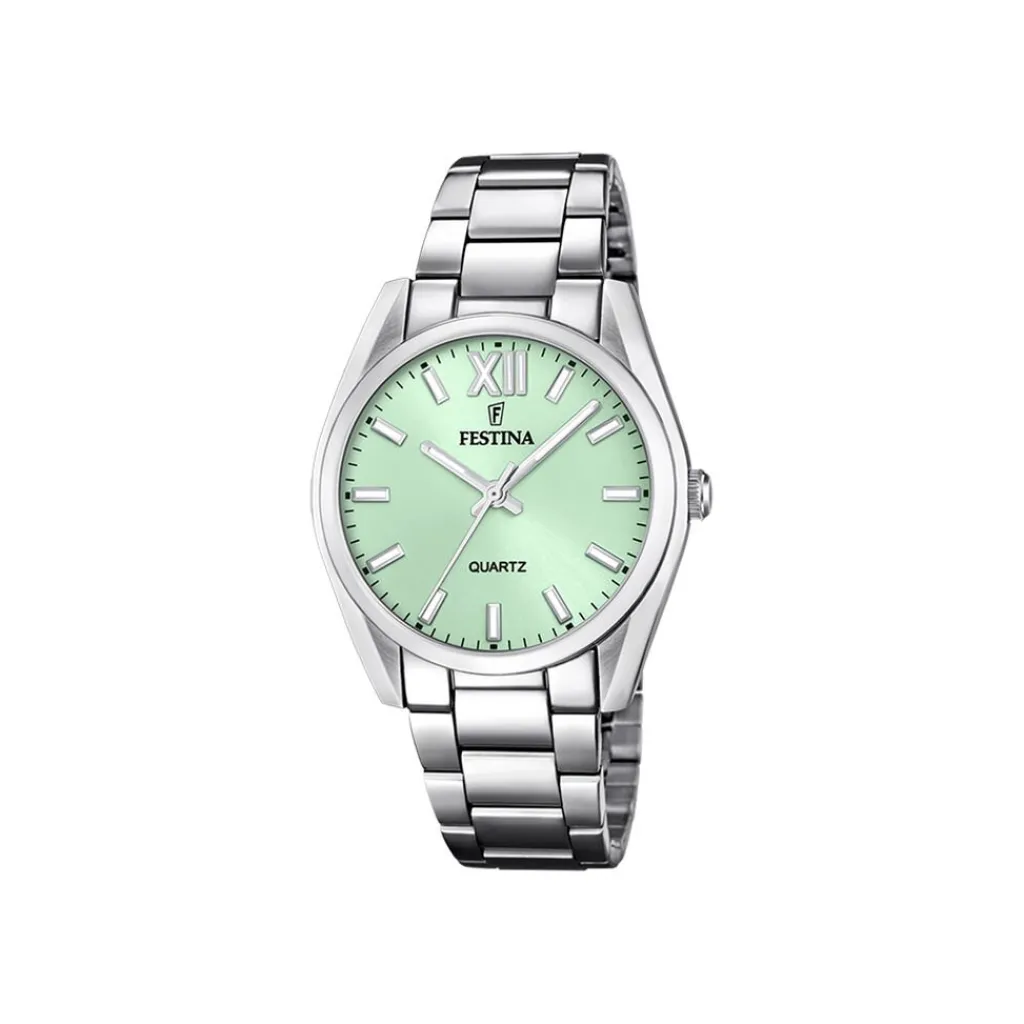 Montre Festina Boyfriend Acier Inoxydable Argenté Quartz Ronde 36,8Mm Fond Vert D’Eau Bracelet Acier Inoxydable Argenté F20622/7