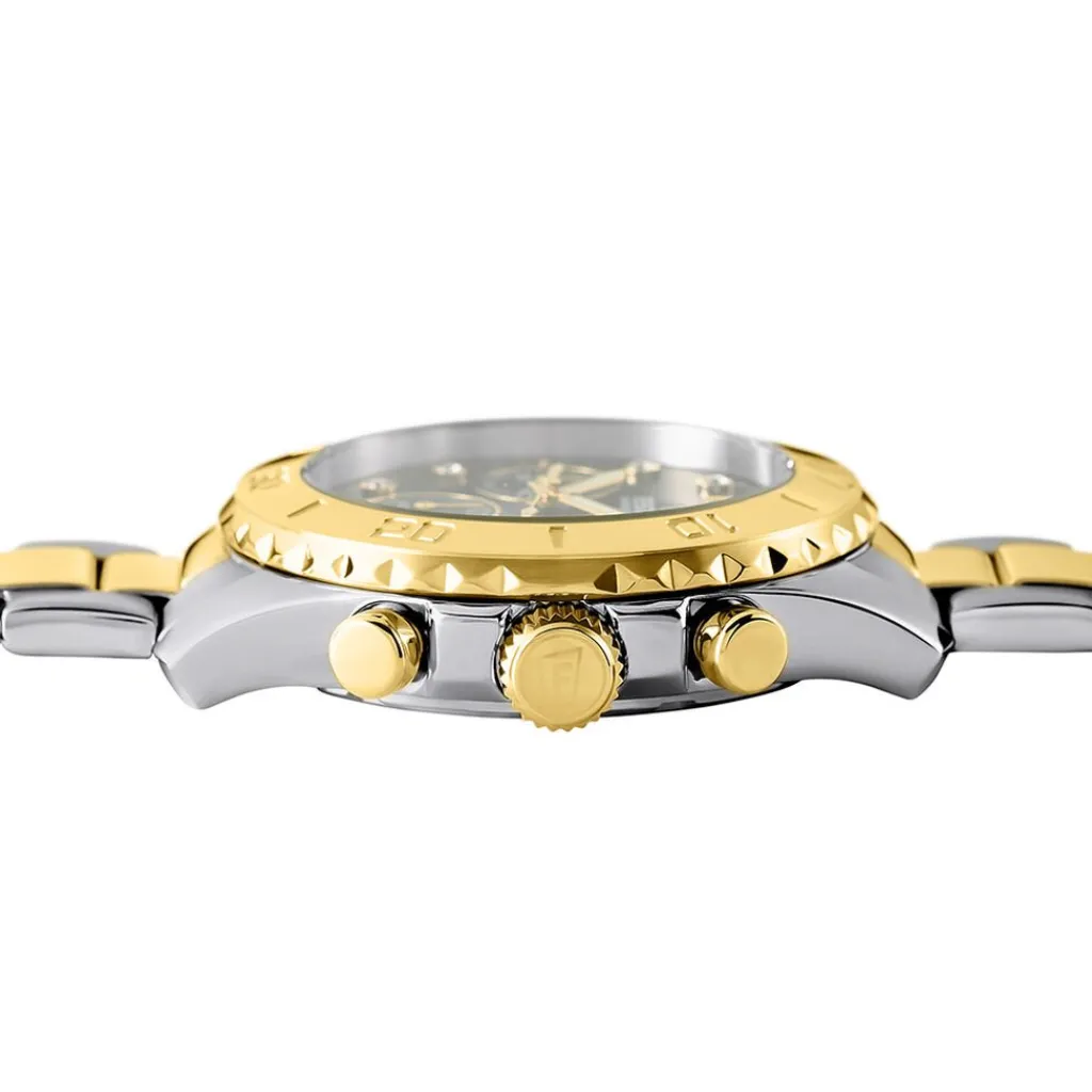 Montre Festina Boyfriend Acier Blanc Ronde Quartz Chronographe 39mm Fond Bleu Lunette Doré Bracelet Acier Bicolore Doré / Rose F20604/3
