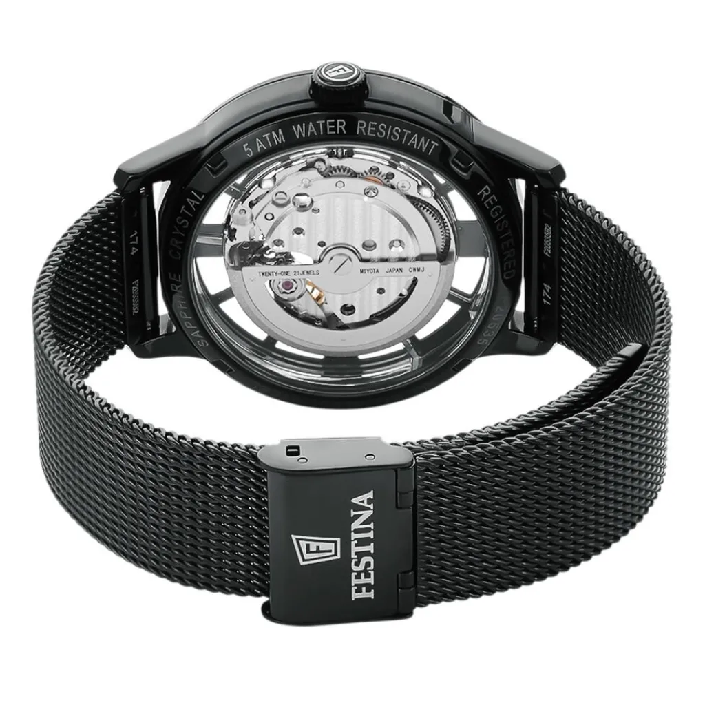 Montre Festina Squelette Acier Noir Ronde 42mm Fond Noir Bracelet Acier Milanais Noir F20535/1
