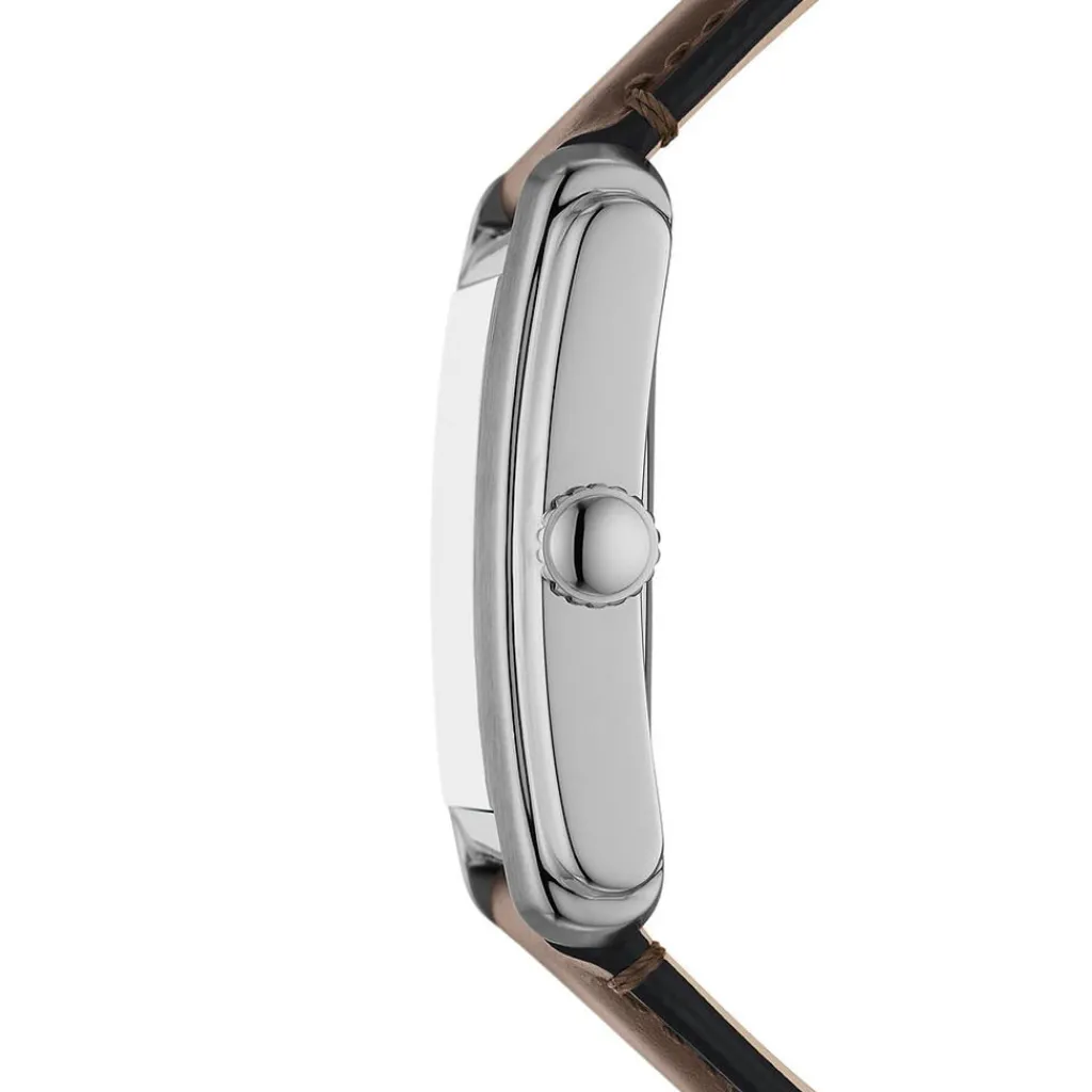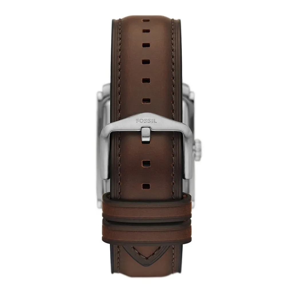 Montre Fossil Carraway Acier Argente Rectangulaire Quartz 30mm Fond Creme Bracelet Cuir Marron Fs6012