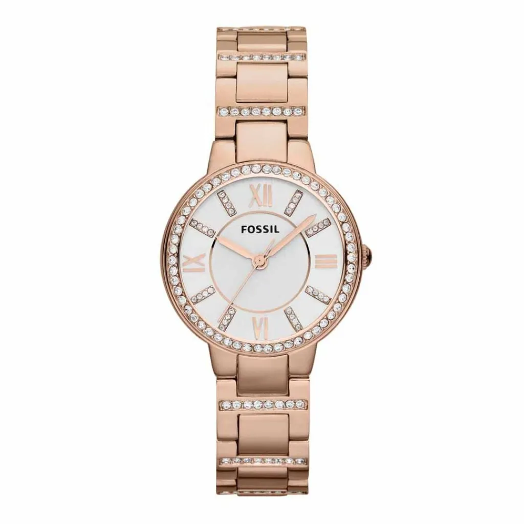 Montre Fossil Virginia Acier Dore Ronde Quartz 30mm Fond Argente Bracelet Acier Rose Es3284