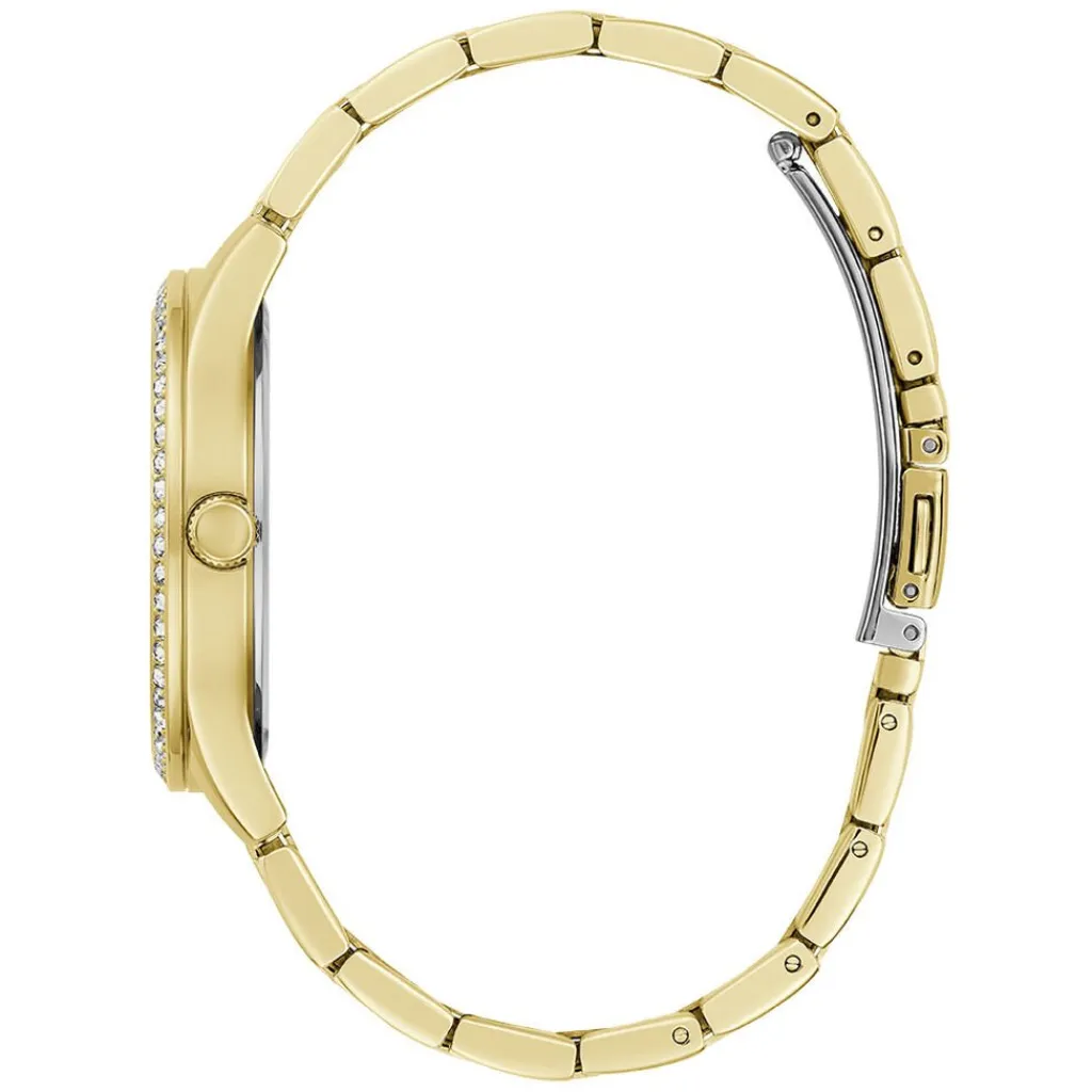 Montre Guess Lady Idol Acier Doré Rond Quartz 38mm Fond Champagne Lunette Strass Bracelet Acier Doré Gw0605l2