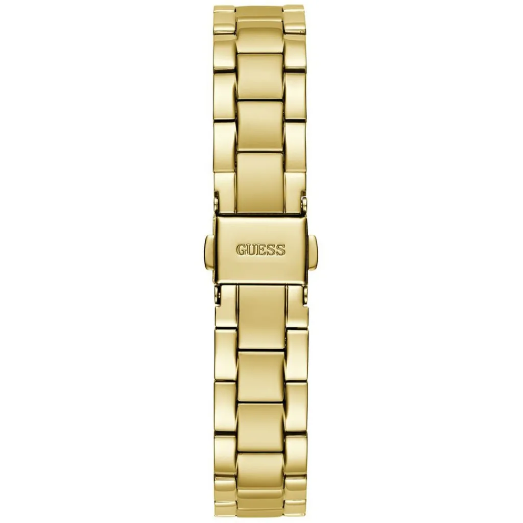 Montre Guess Mini Luna Acier Doré Ronde Quartz 30mm Lunette Dentelee Fond Champagne Bracelet Acier Doré Gw0687l2