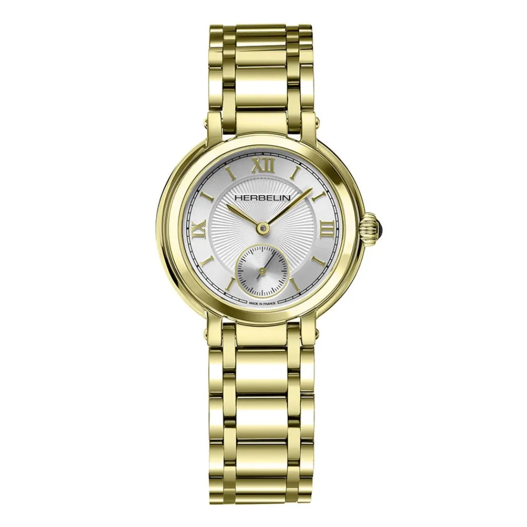 Montre Herbelin Galet Acier Dore Ronde Quartz 31.5mm Fond Argente Bracelet Acier Dore 10630bp28