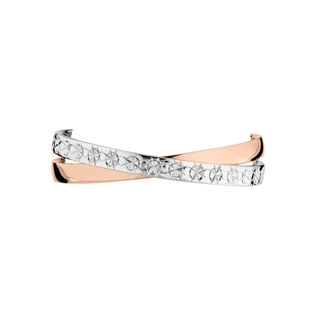 Alliance 2 Ors Rose Et Blanc 375/1000 Fantaisie Entrelacée 2mm