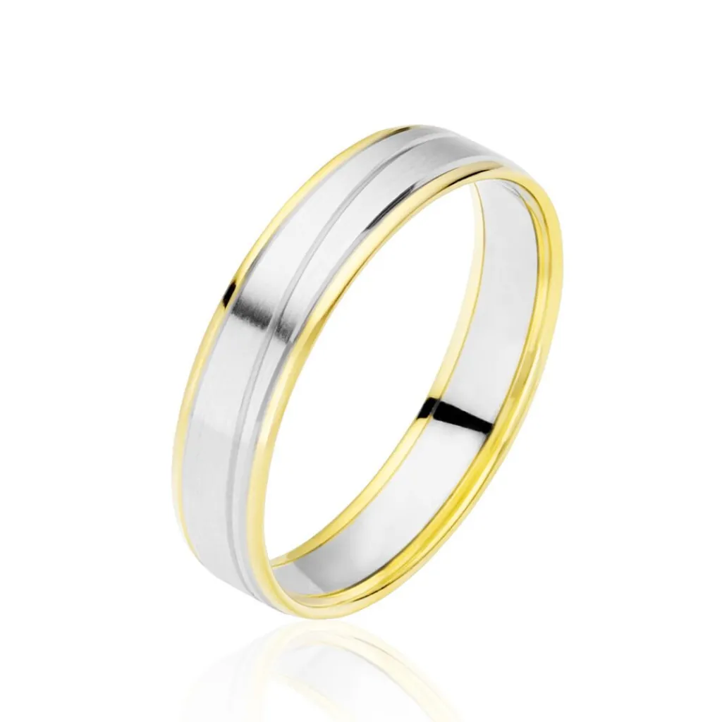 Alliance Or Bicolore 750/1000 Blanc Et Jaune Liseret Or Jaune 5mm