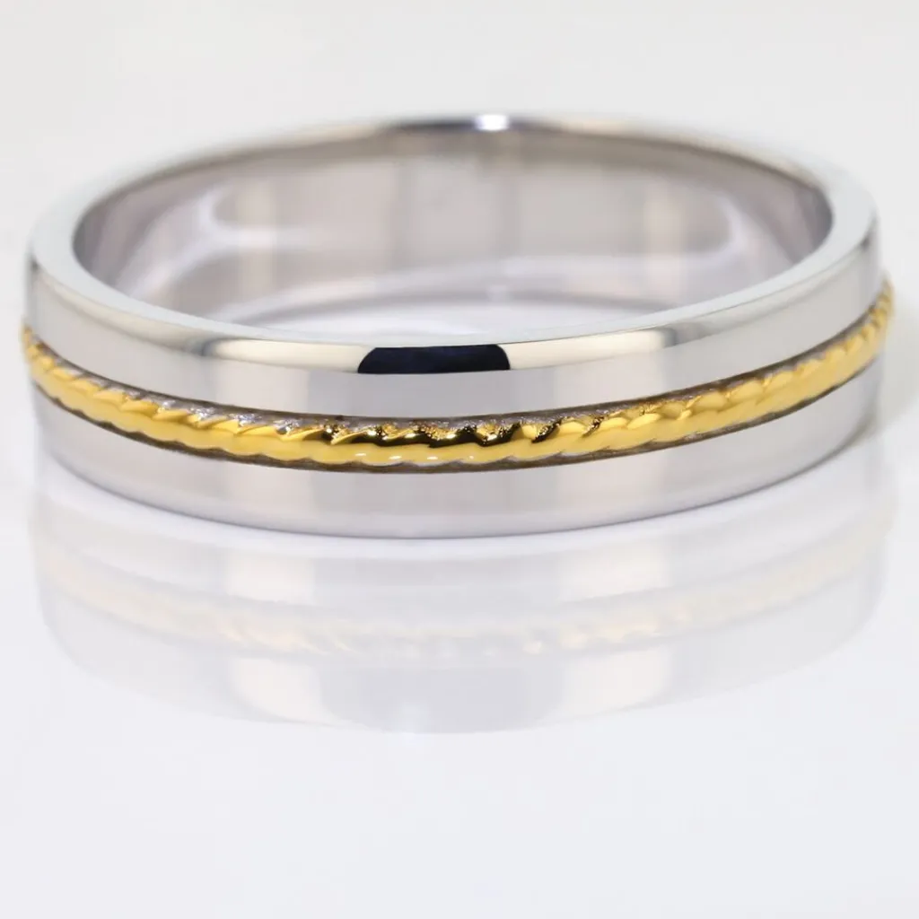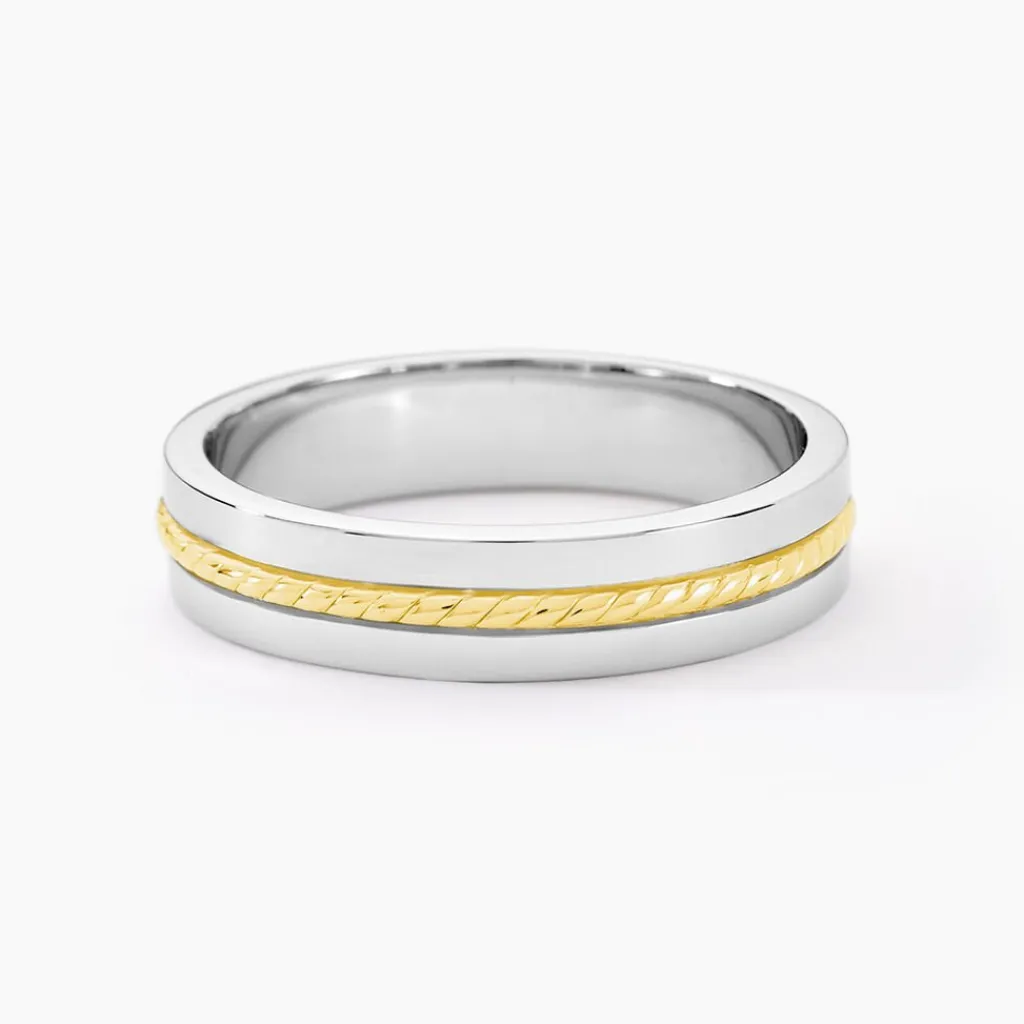 Alliance Argent Bicolore 925/1000 Ruban Effet Torsade 5mm
