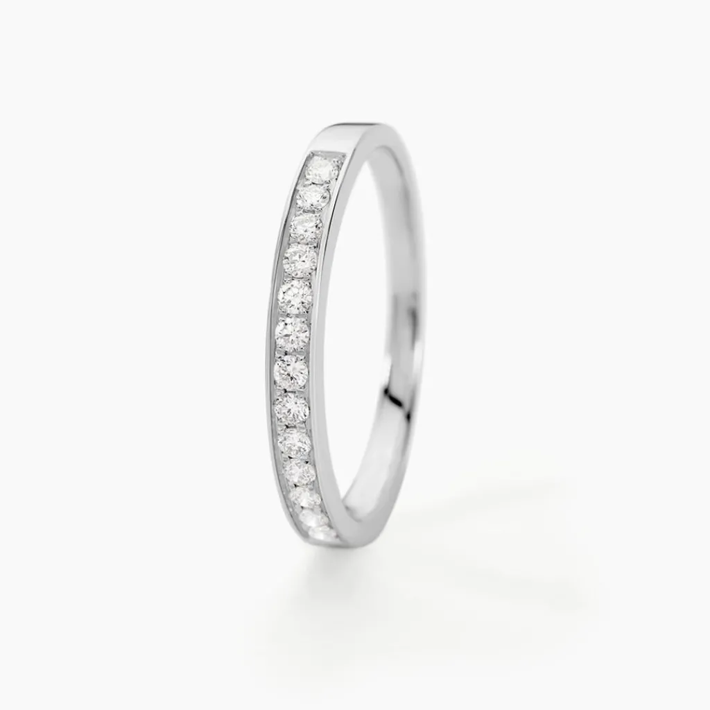 Demi-alliance Or Blanc 375/1000 Diamants 0.20ct Serti Grain