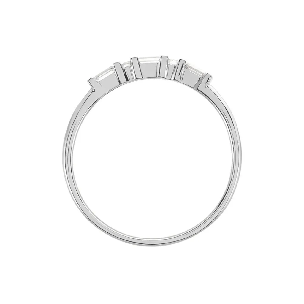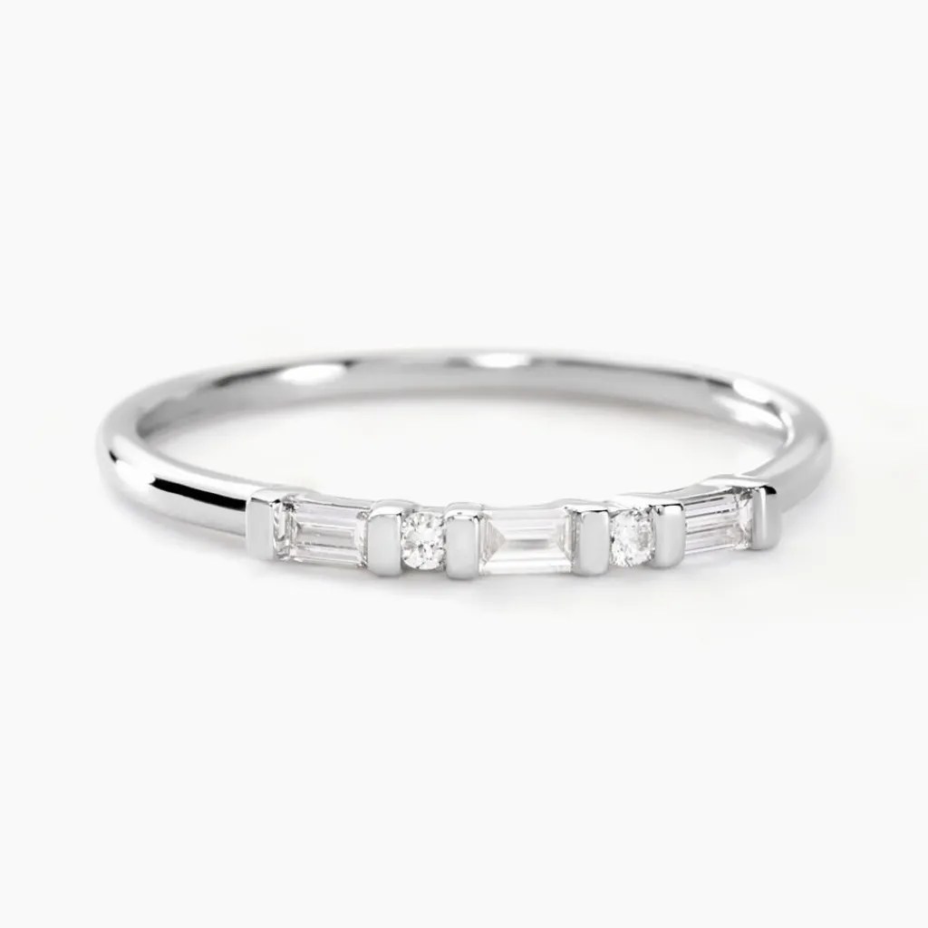 Alliance Or Blanc 375/1000 Alternance Diamants Taille Baguette 0.12cts Et Taille Ronde 0.0236cts Serti Barrette