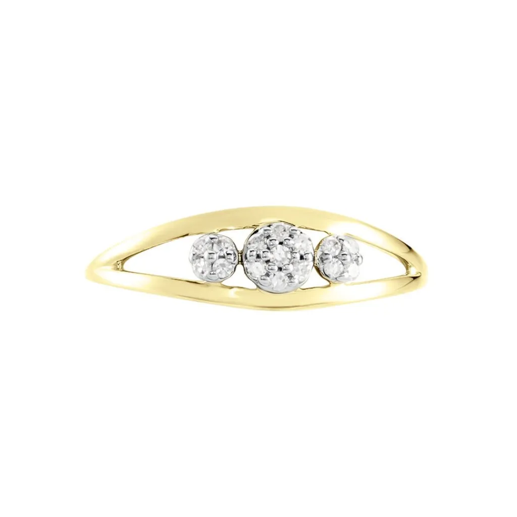 Bague Or Jaune 375/1000 Trilogie Pavage Diamants