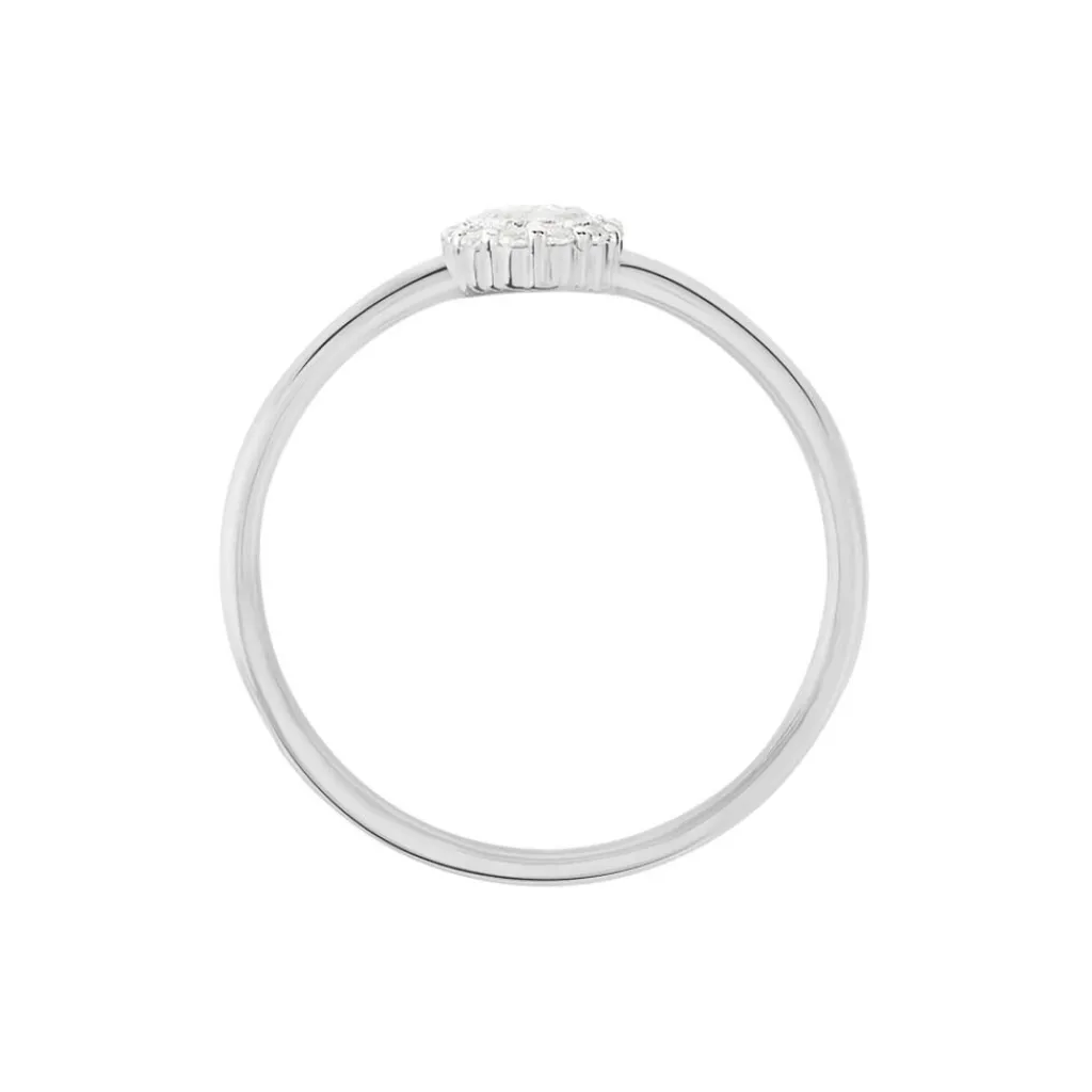 Bague Or Blanc 375/1000 Effet Perle Diamant Central Entourage Diamants 0.117cts