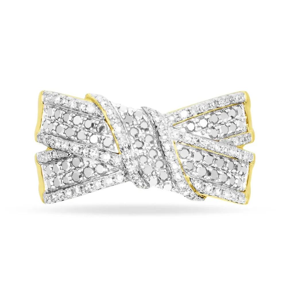 Bague Or Jaune 375/1000 Forme N艙ud Pavage Diamants