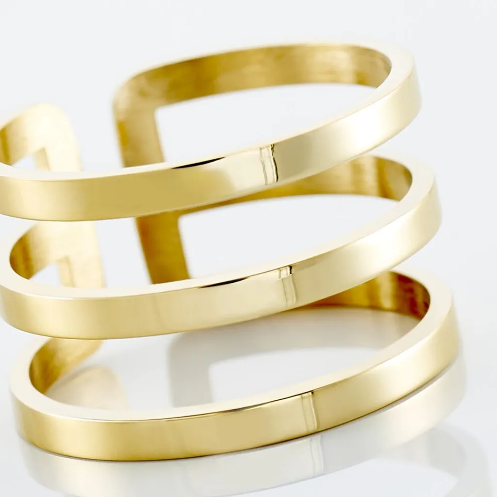 Bague Ajustable Acier Inoxydable Jaune 3 Rangs Ajoures