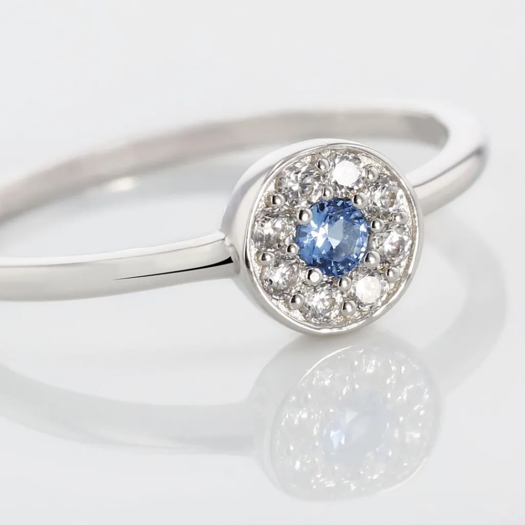 Bague Argent Blanc 925/1000 Puce Serti Micro Setting Oxydes De Zirconium Bleus