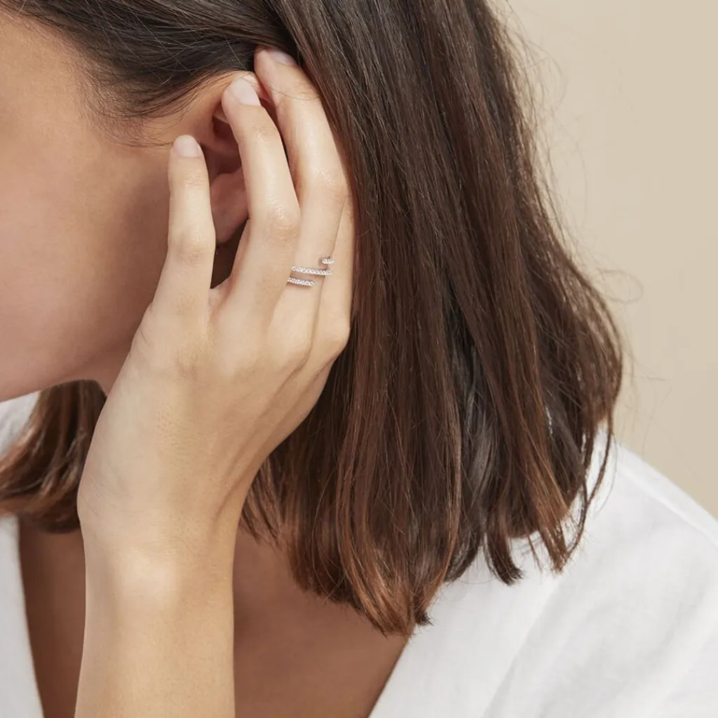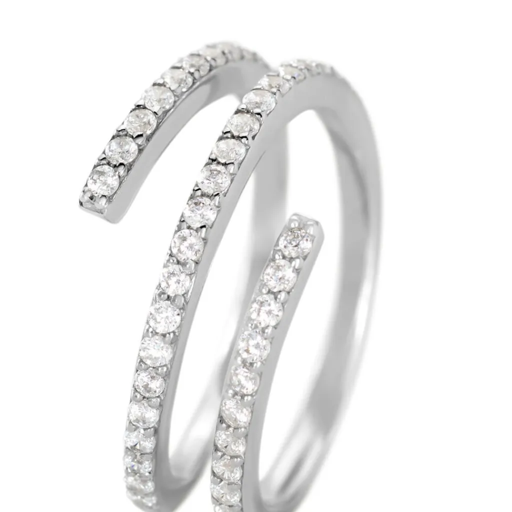 Bague Argent Blanc 925/1000 Multitours Pavage Oxydes De Zirconium