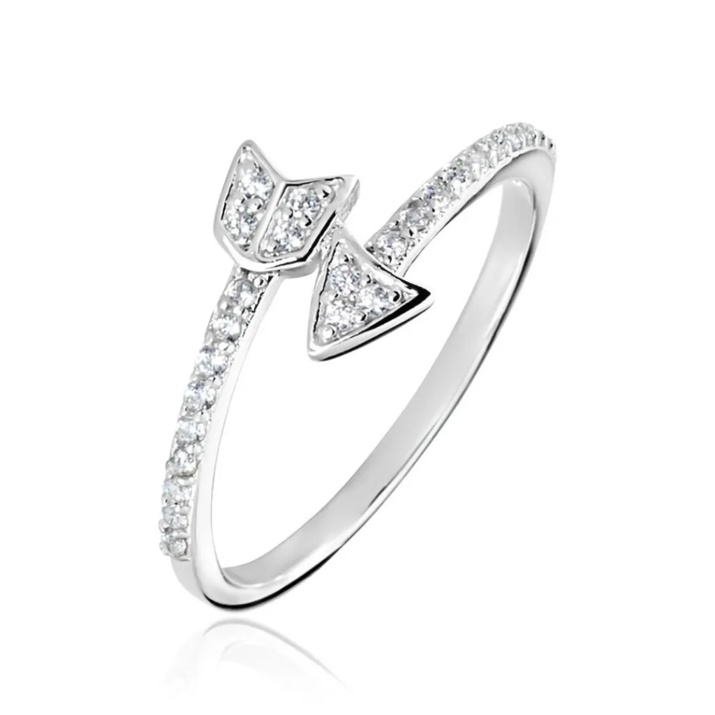 Bague Argent Blanc 925/1000 Flèche Pavage Oxydes De Zirconium
