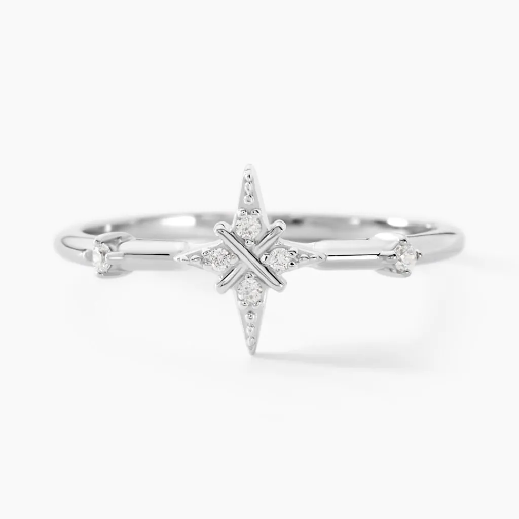 Bague Argent Blanc 925/1000 étoile Polaire Pavage Oxydes De Zirconium