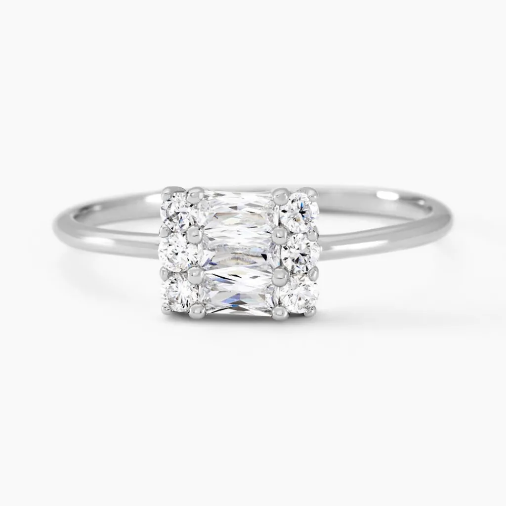Bague Argent Blanc 925/1000 Oxydes De Zirconium Taille Baguette