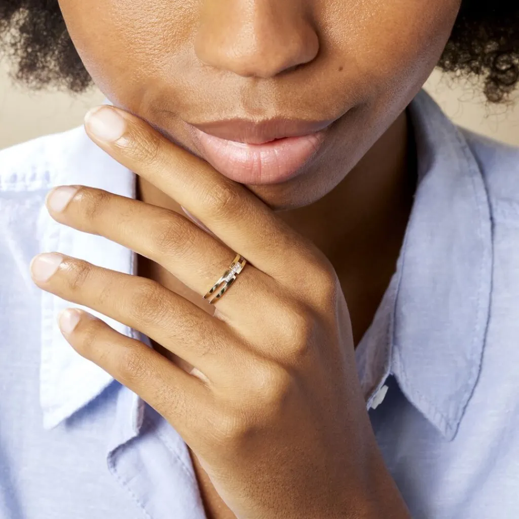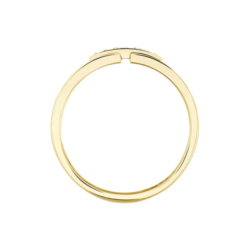 Bague Or Jaune 375/1000 2 Rangs Ajoures Barette Diamants