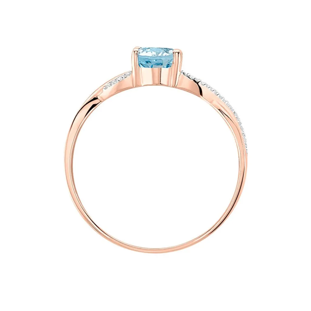 Bague Or Rose 375/1000 Croisee Topaze Ovale Serti Griffes