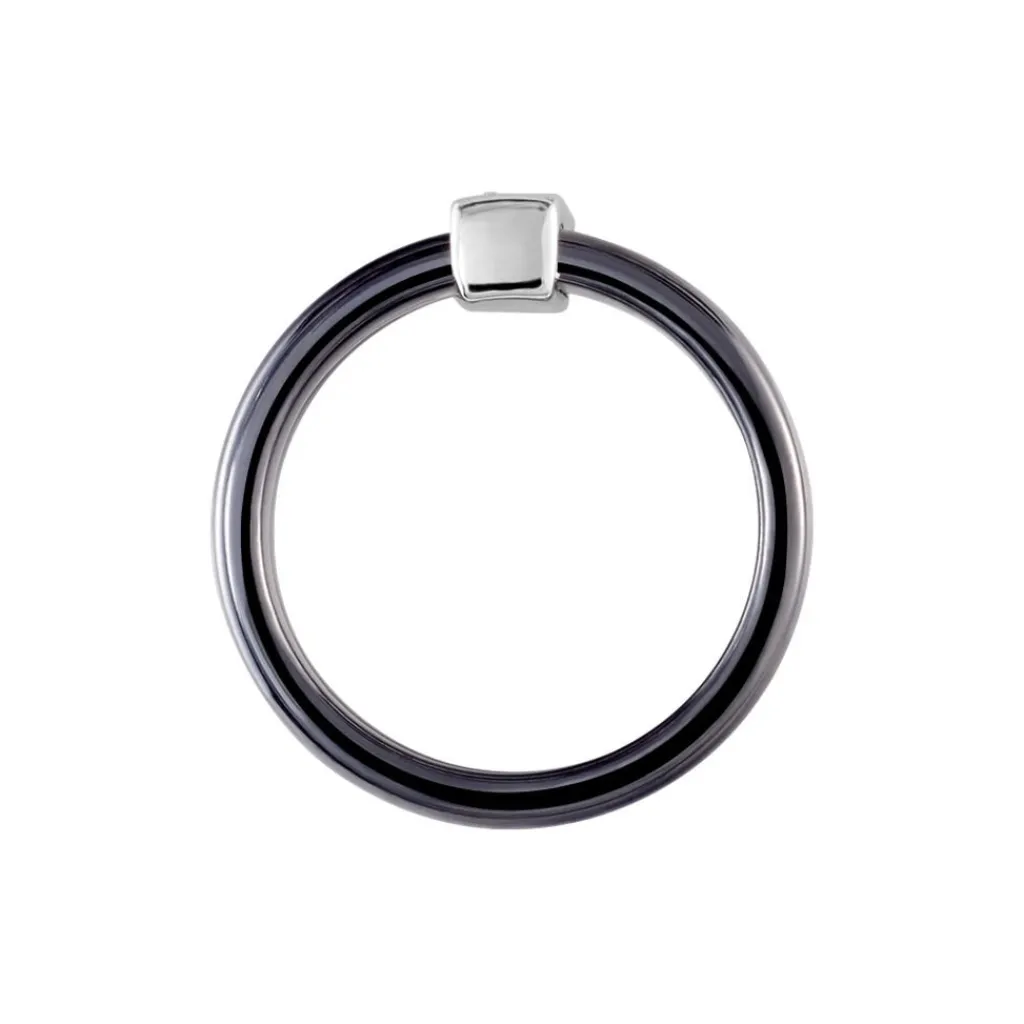 Bague Argent Blanc 925/1000 Ceramique Noire 2 Anneaux Ceramique 1 Anneau Argent Oxydes De Zirconium Blancs