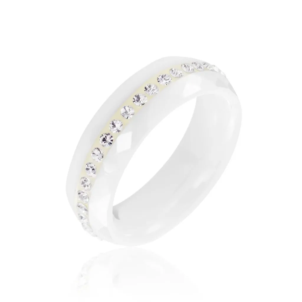 Bague Ceramique Blanche 1 Rang Strass Blancs 6mm