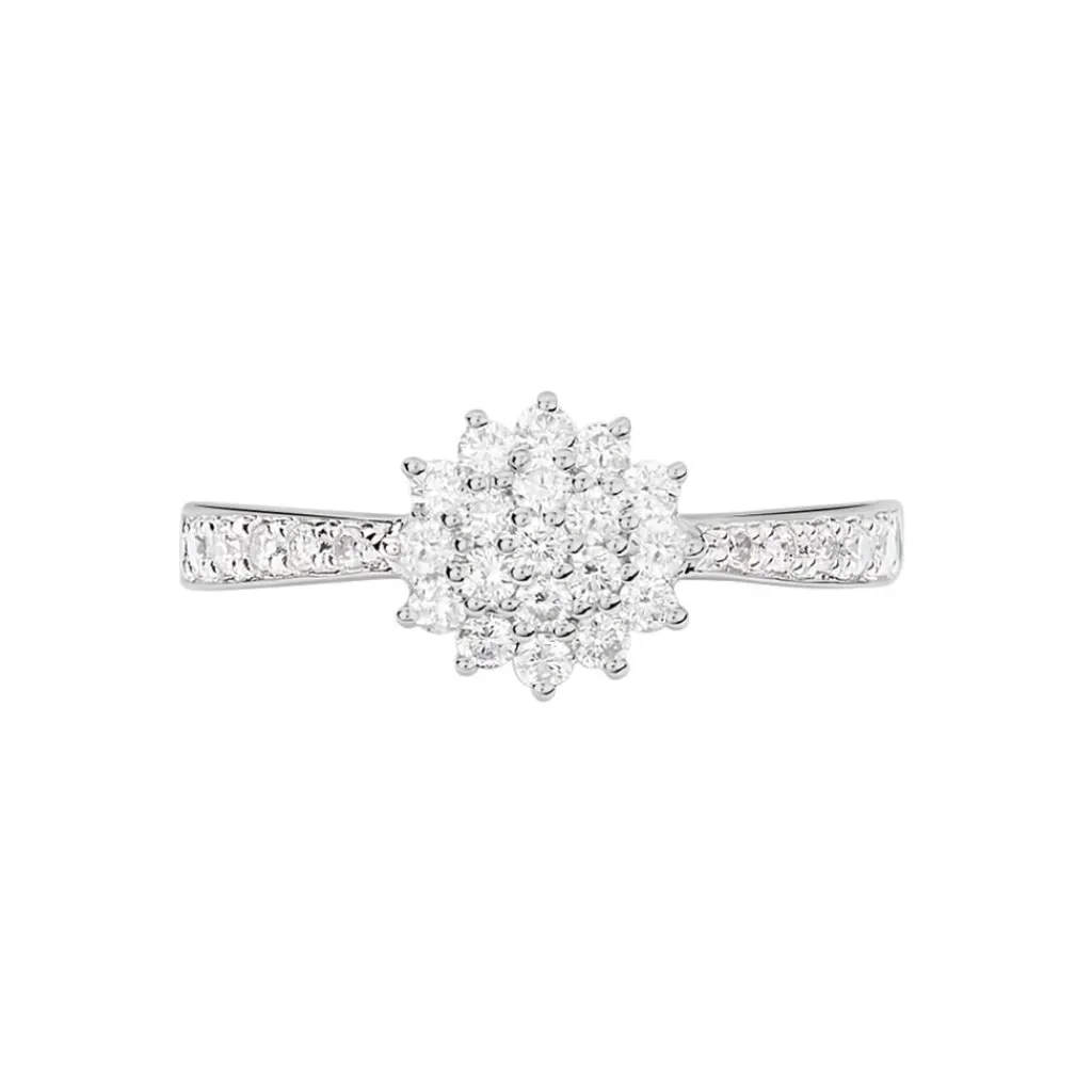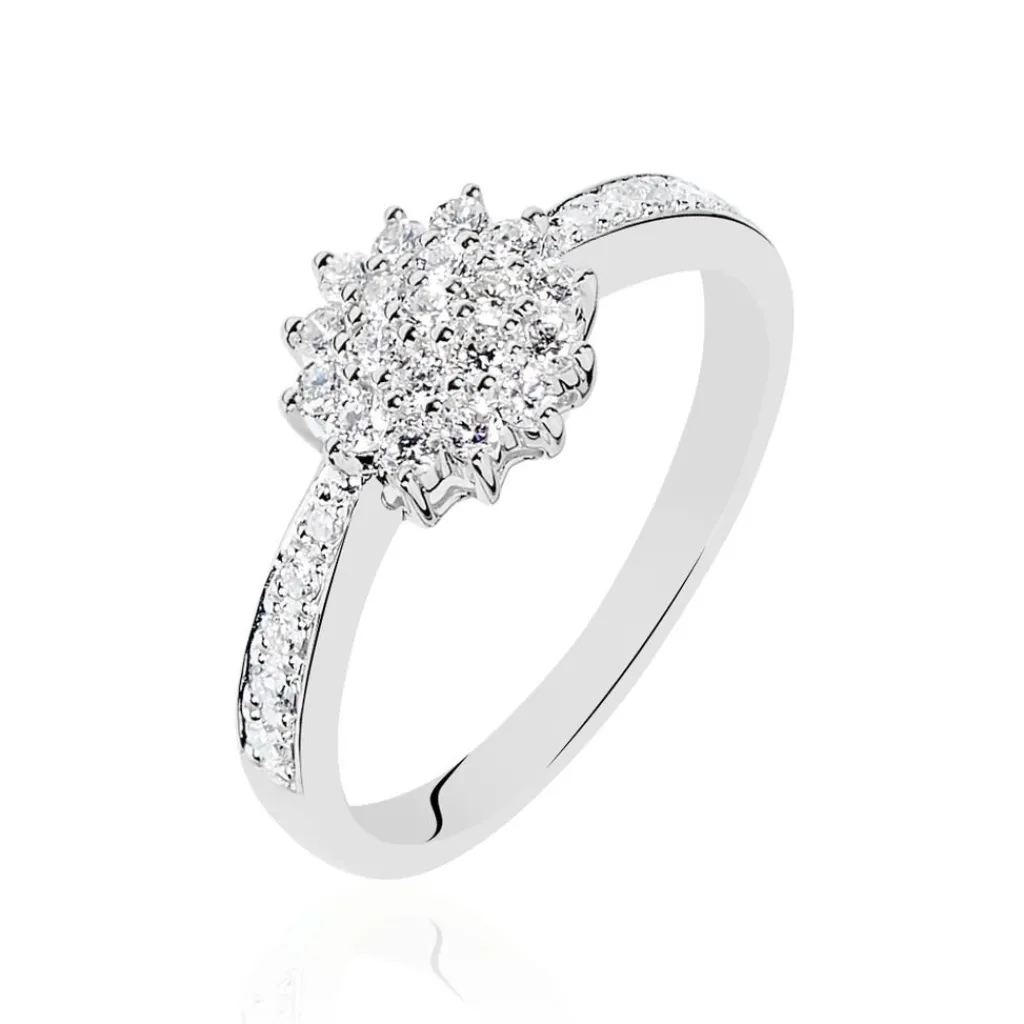 Bague Or Blanc 750/1000 Choux Accompagne Diamants 0.46cts