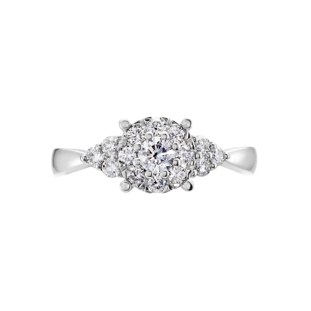 Bague Platine 950/1000 Multipierre Accompagne Diamants