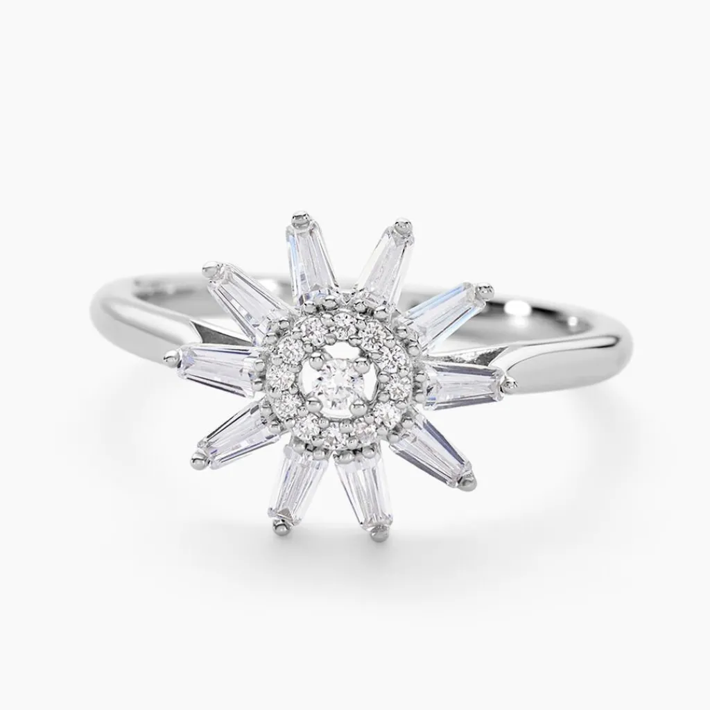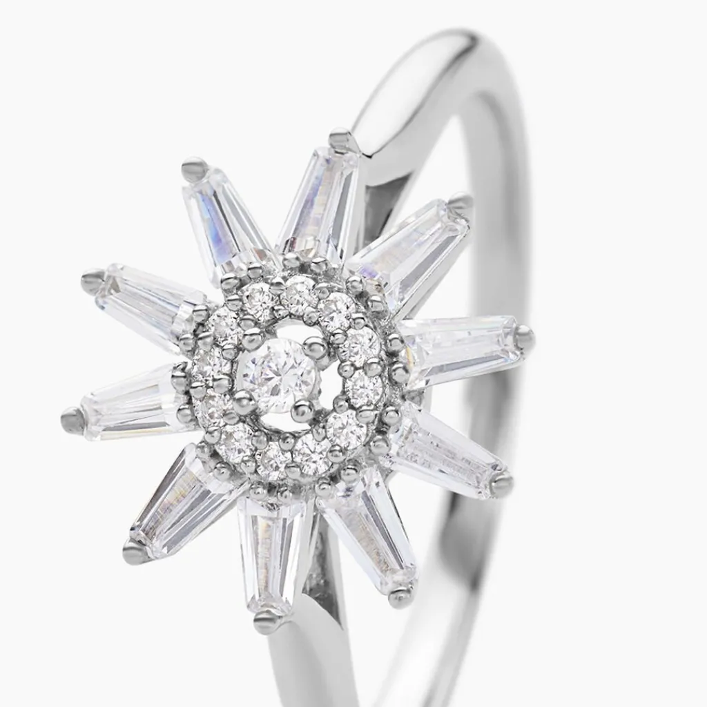 Bague Argent Blanc 925/1000 Fleur Pavage Oxydes De Zirconium