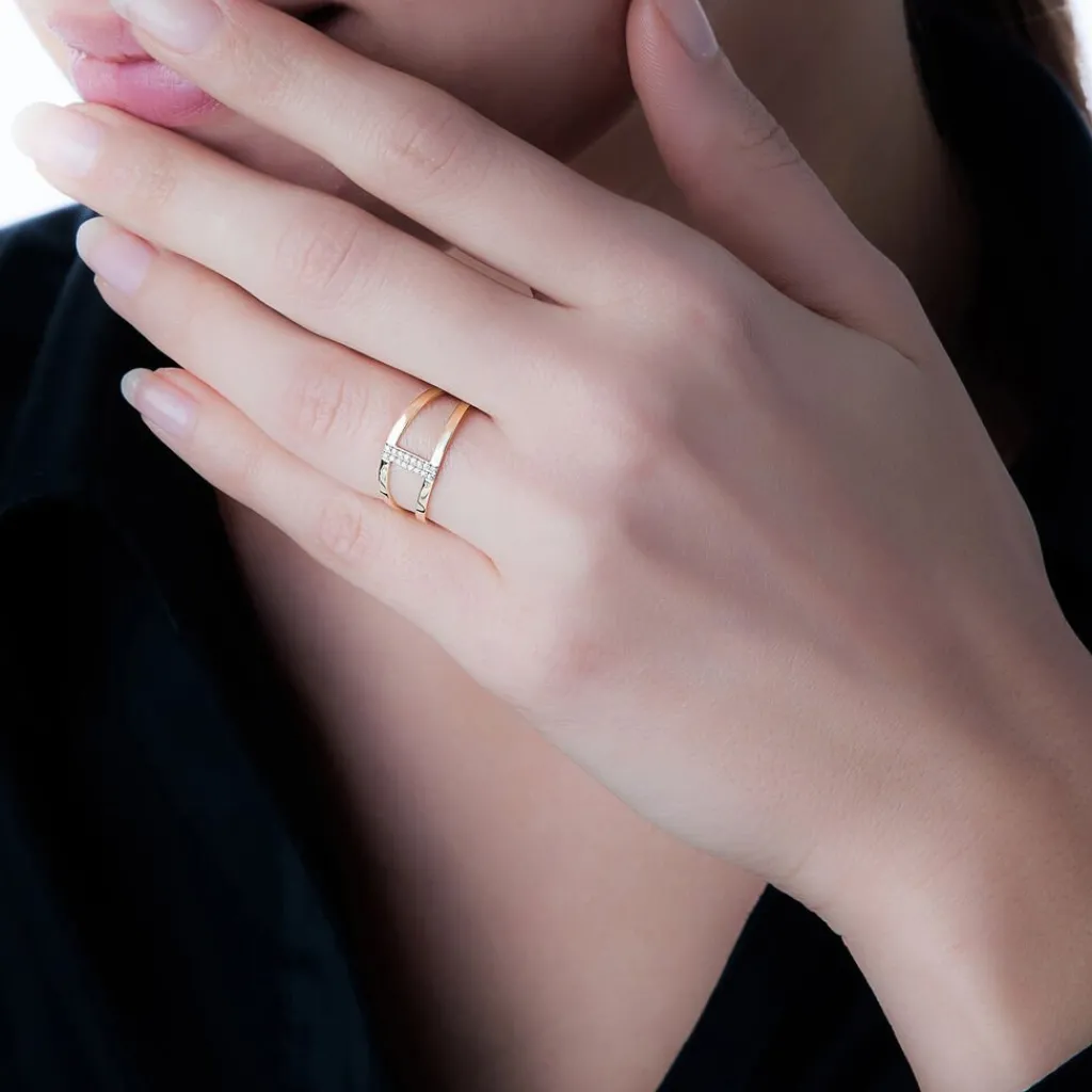 Bague Or Rose 375/1000 Ajouree Barre De Milieu Pavee Diamants
