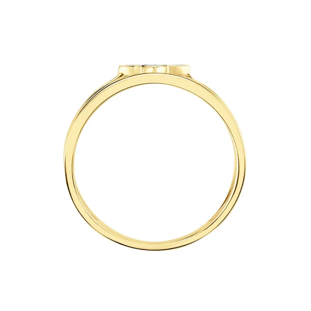 Bague Or Jaune 375/1000 2 Rangs Dont 1 Lisse Et 1 Fleur Central Accompagne Pavage Diamants Ronds