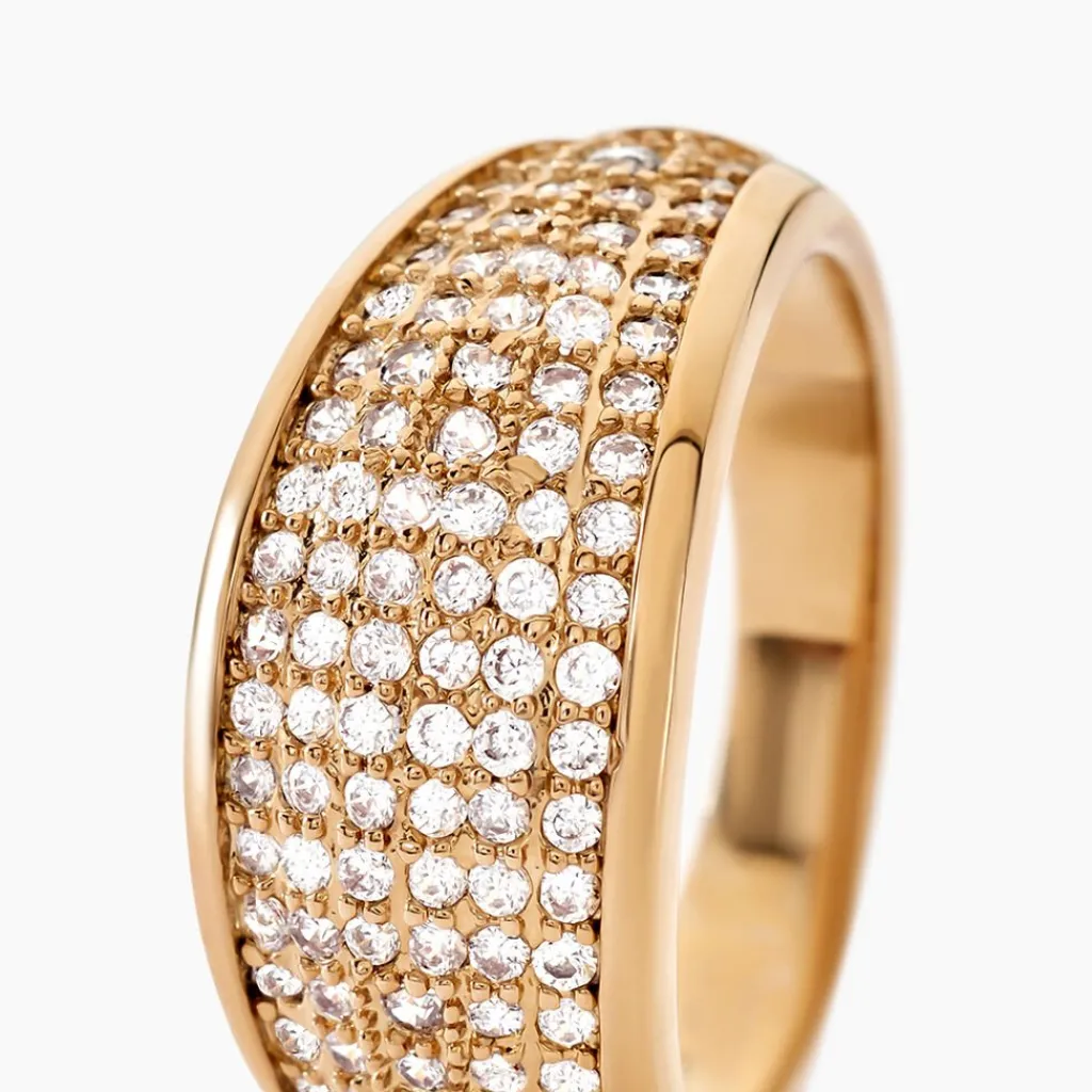 Bague Plaqué Or Jaune Oxydes De Zirconium Pavee
