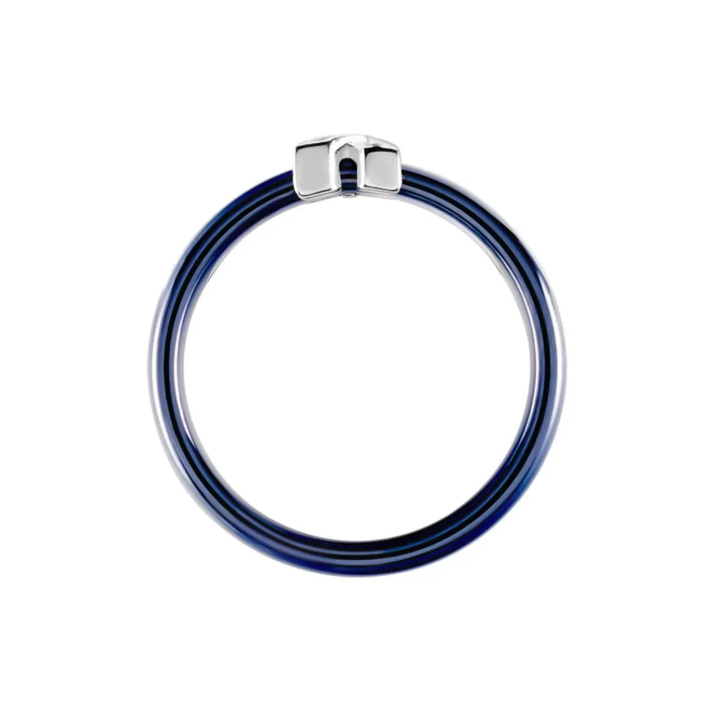Bague Argent Blanc 925/1000 Ceramique Bleue Croix Oxydes De Zirconium Micro Serti Largeur 4mm