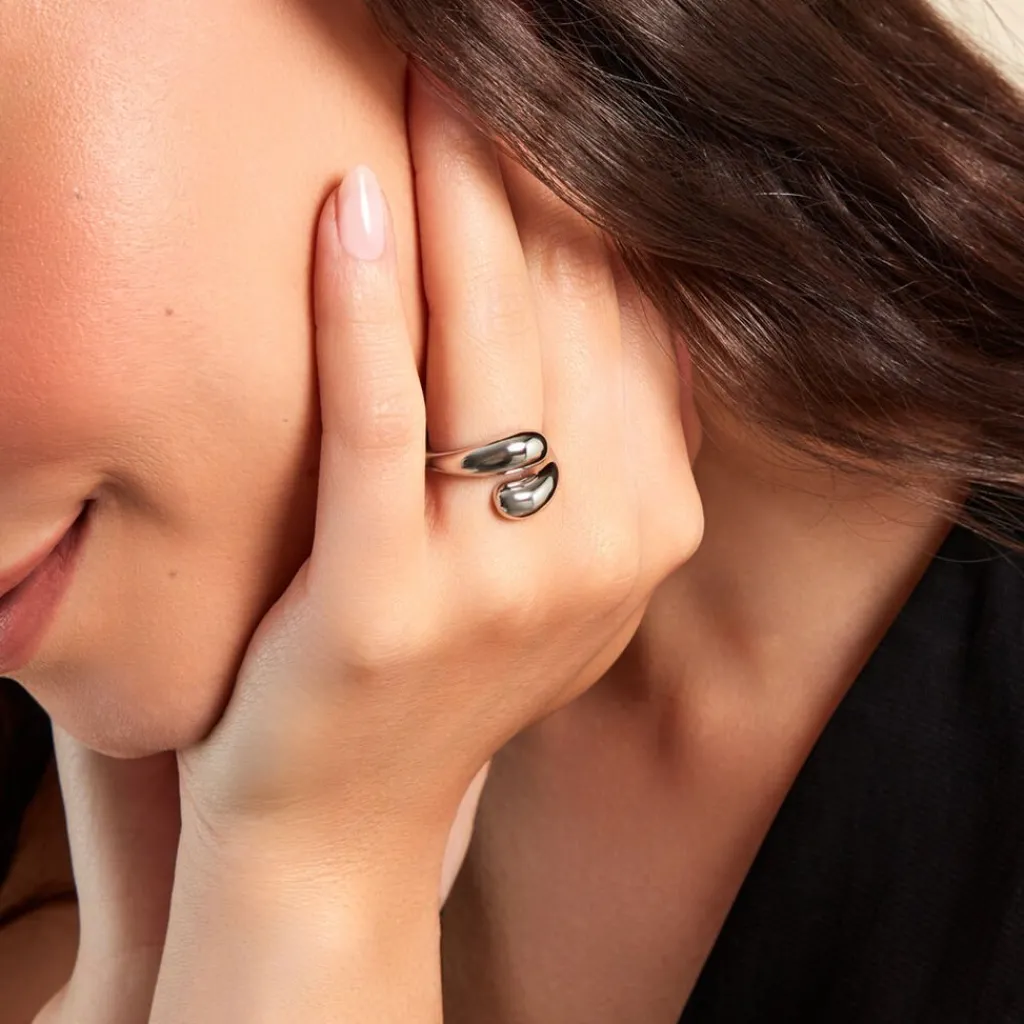 Bague Argent Blanc 925/1000 Gouttes Bombées
