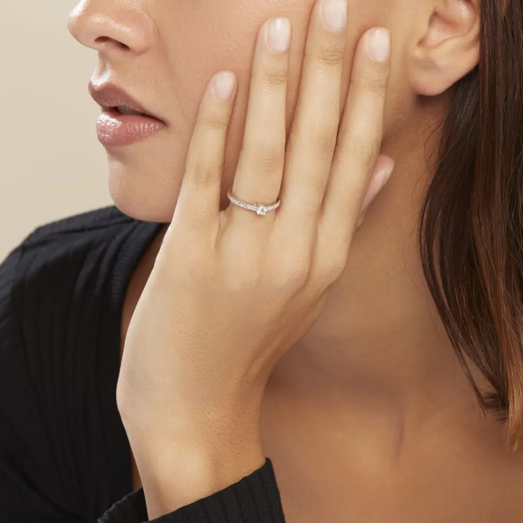 Solitaire Or Blanc 750/1000 Diamant 0.20cts Accompagne Diamants