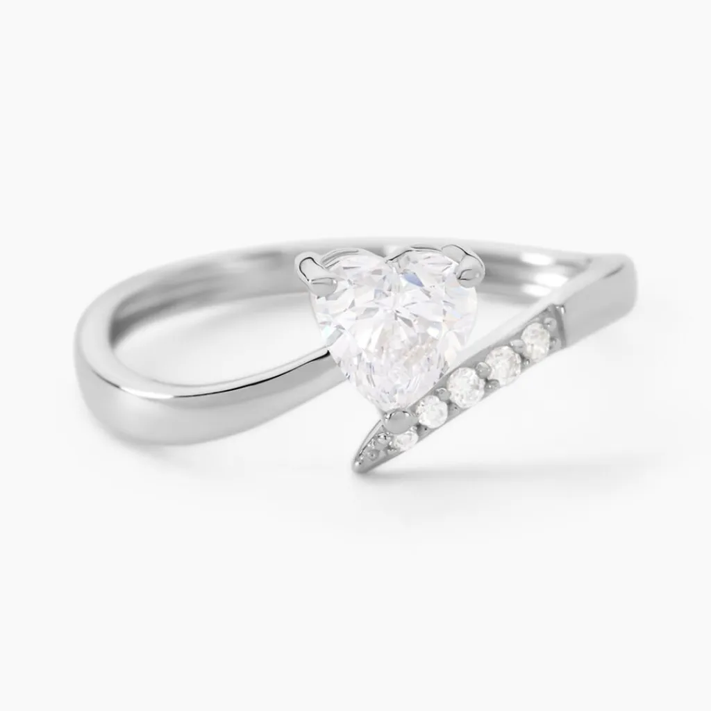 Bague Or Blanc 375/1000 Oxyde De Zirconium Forme C艙ur Et Oxydes De Zirconium
