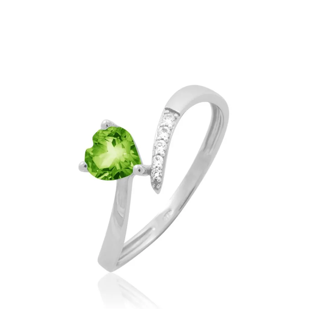 Bague Or Blanc 375/1000 Péridot Forme C艙ur Et Diamants