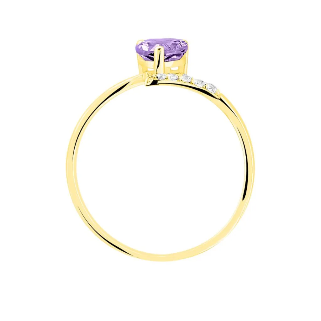 Bague Or Jaune 375/1000 Vrille Et Coeur Amethyste 0.41ct Serti Griffes Et Diamants