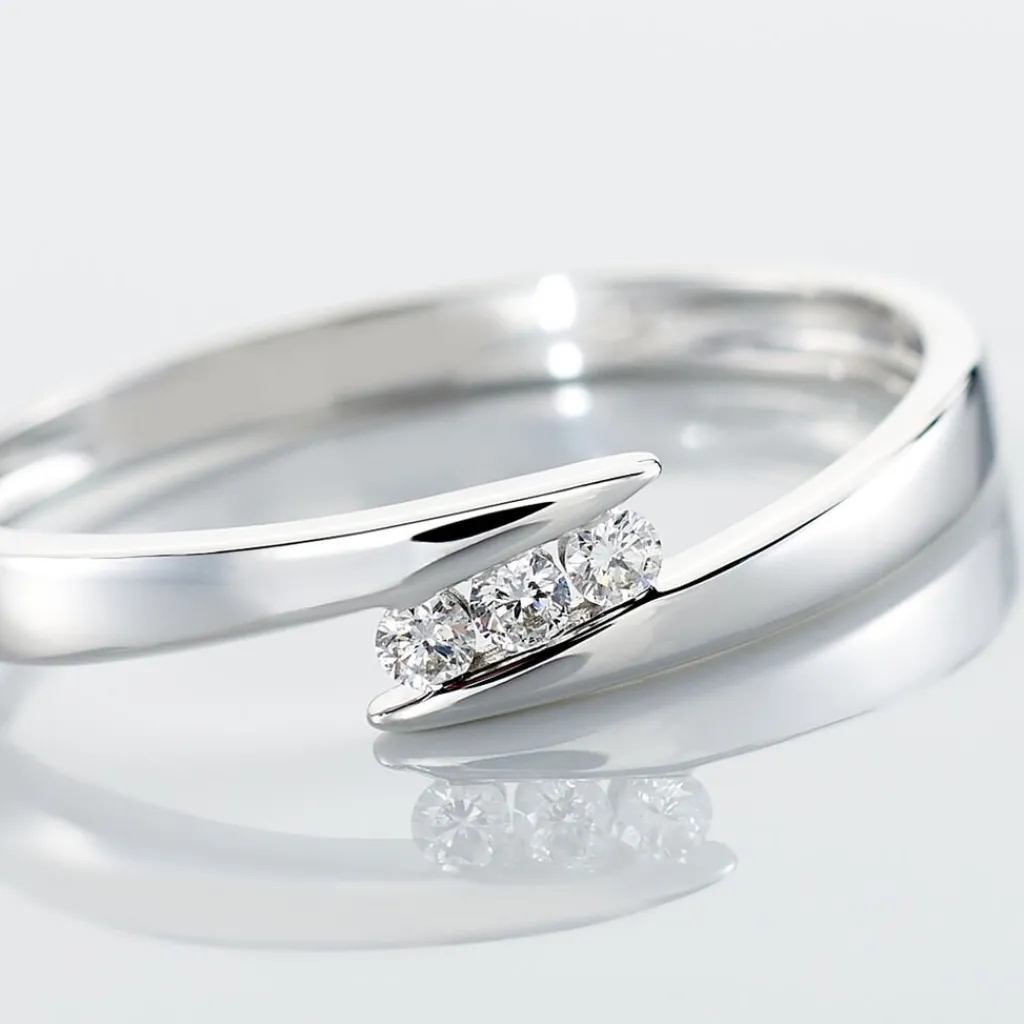 Bague Or Blanc 375/1000 Trilogie Diamants 0.07cts