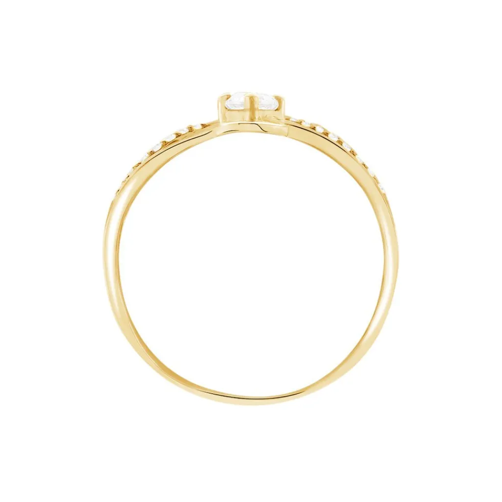 Bague Or Jaune 375/1000 Vagues Entrelacees Oxydes De Zirconium