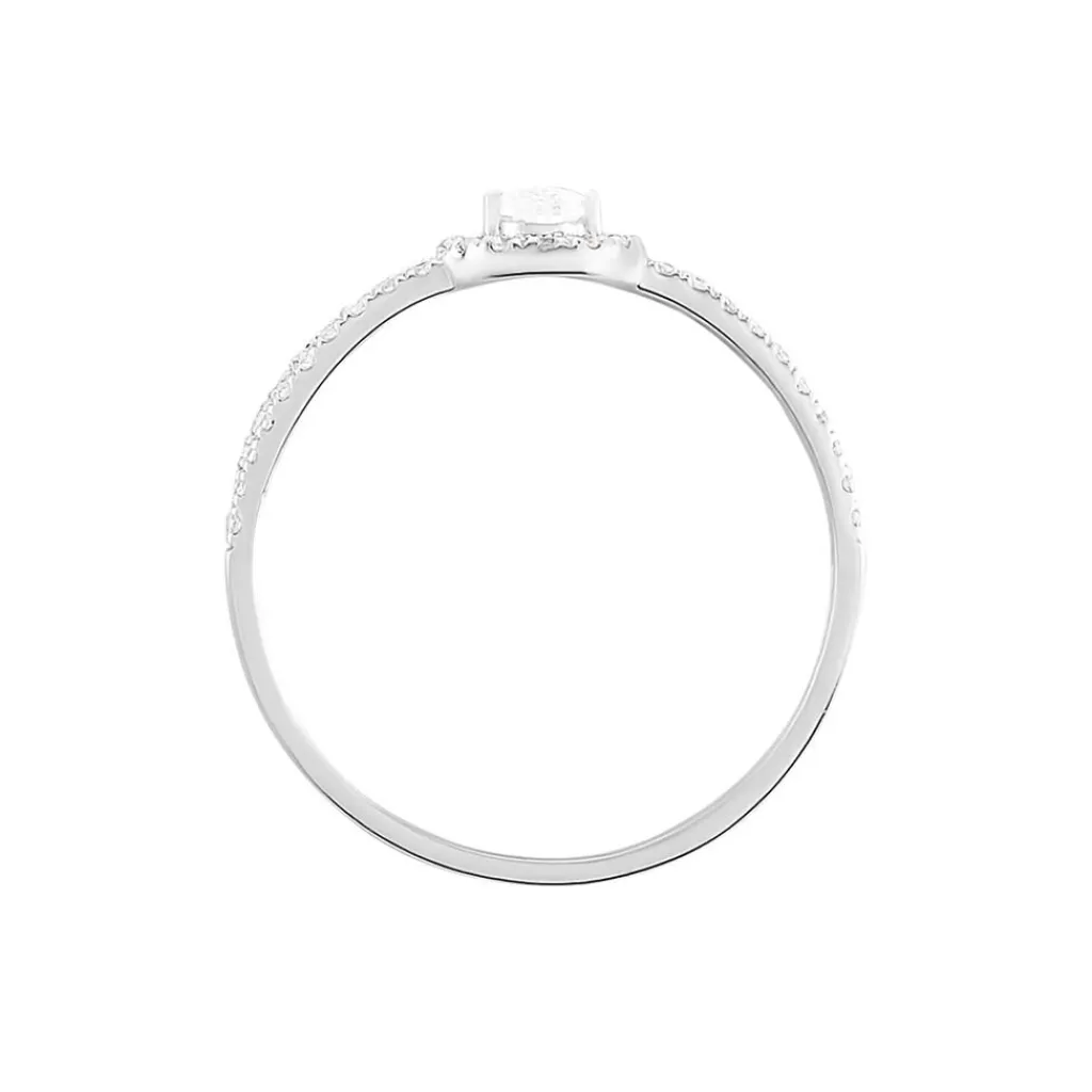 Bague Or Blanc 375/1000 Oxyde De Zirconium Central Forme Poire Accompagne Oxydes De Zirconium