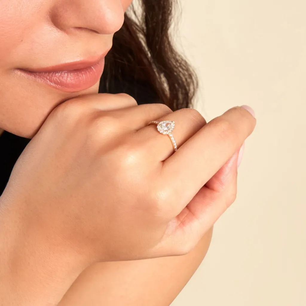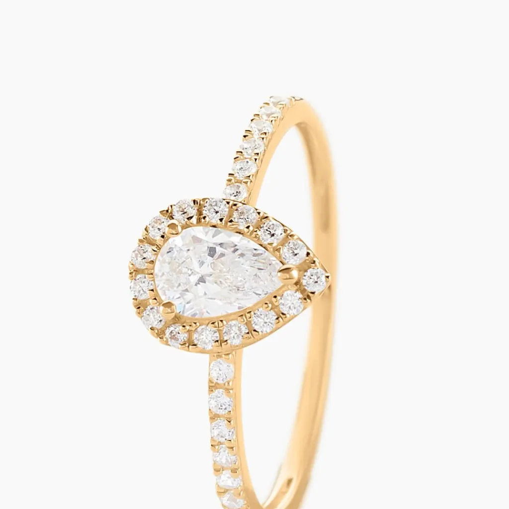 Solitaire Accompagne Or Jaune 375/1000 Oxyde De Zirconium Poire