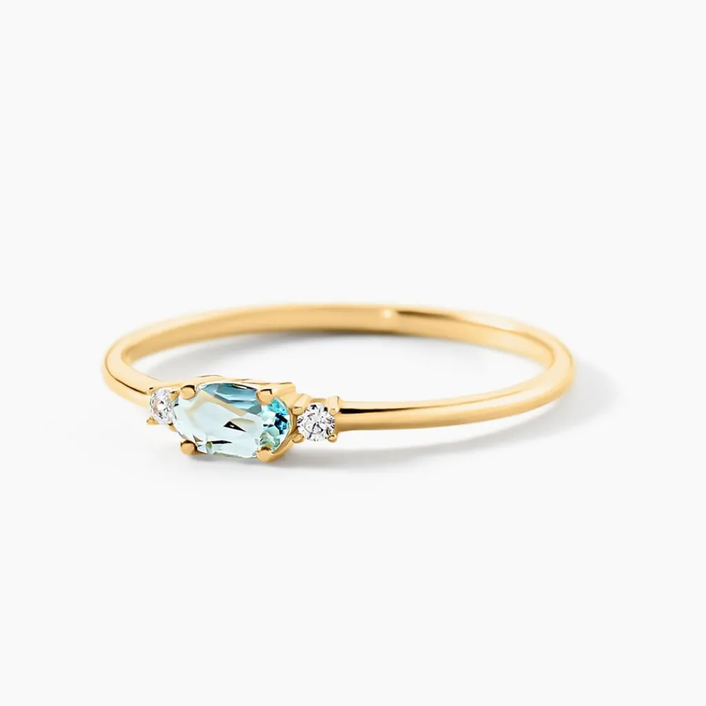 Bague Or Jaune 375/1000 Solitaire Ovale Topaze Bleu Sky 0,20Cts Serti Griffes Accompagne Oxyde De Zirconium