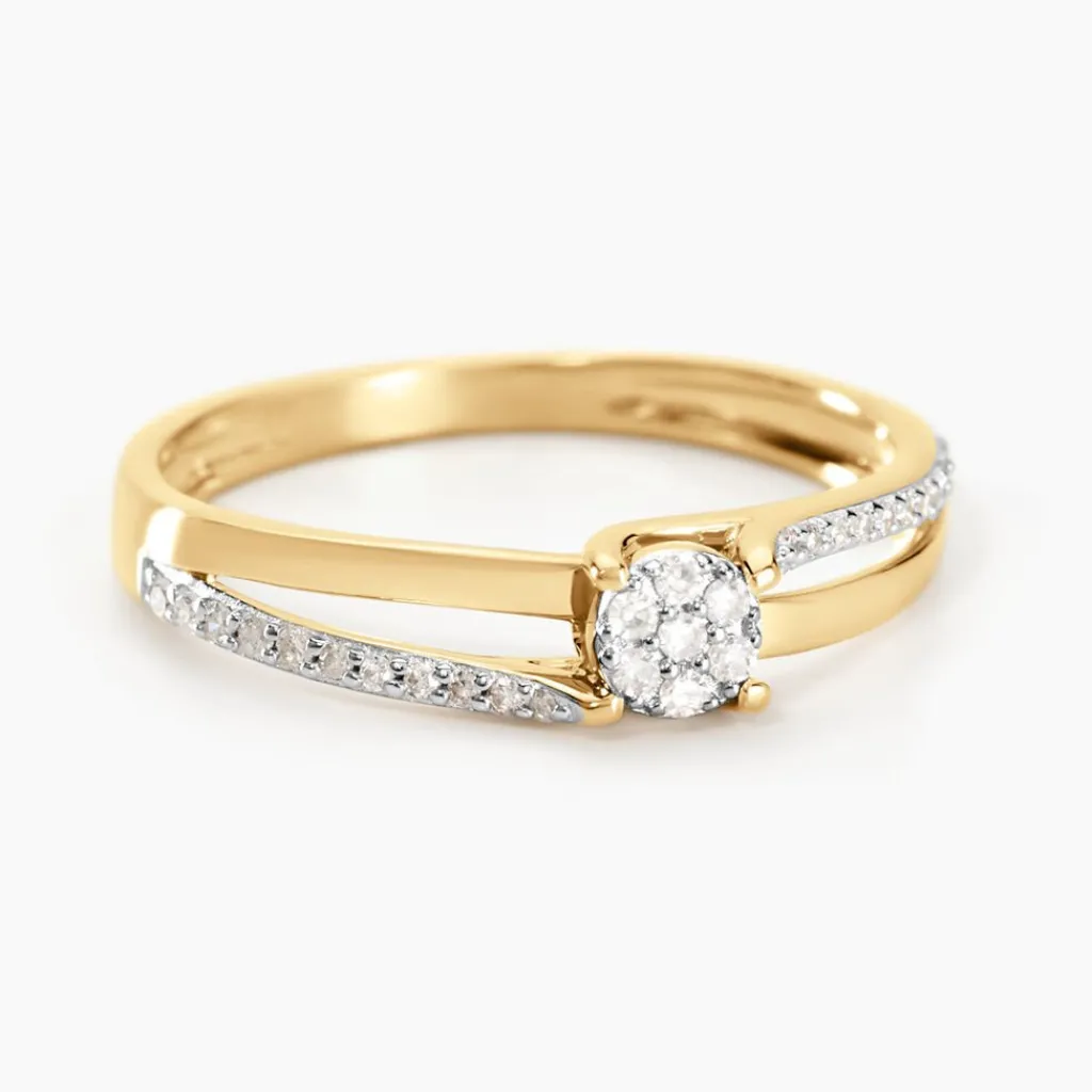 Bague Or Jaune 375/1000 Multipierres Diamants Avec Corps De Bague Ajoure Semi Pavage Diamants